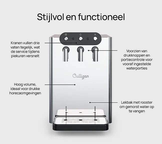Cela garantit un flux constant d’eau pure et au goût délicieux pour tous vos collaborateurs.